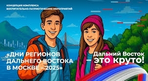 «Дни регионов Дальнего Востока в Москве» – это фестиваль, в рамках которого в разных частях Москвы пройдут культурно-выставочные и деловые мероприятия. Фестиваль направлен на повышение интереса молодёжи к развитию культурных и профессиональных возможностей в регионах Дальнего Востока.